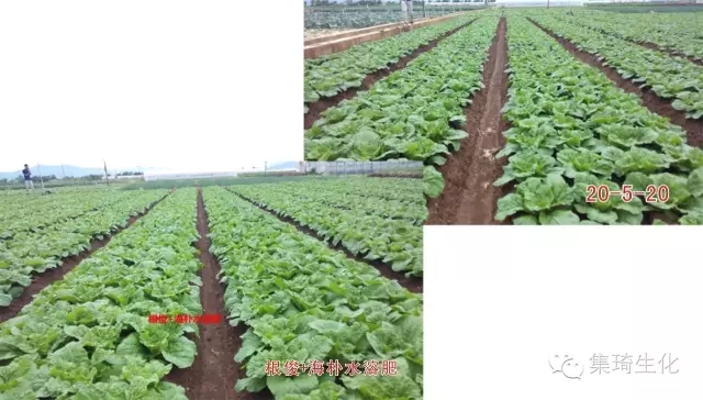 試驗(yàn):為驗(yàn)證根俊+海樸大量元素水溶肥的肥效,2015年6月16日,市場(chǎng)部老師王安葦在白菜地做了根