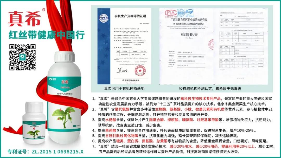 2019年桂林集琦生化有限公司引進(jìn)中國農(nóng)業(yè)大學(xué)潘燦平教授富硒專利技術(shù),聯(lián)合開發(fā)出適合作物應(yīng)用的高科技富硒產(chǎn)品“真?!?,該產(chǎn)品一經(jīng)推出即受到了廣泛的關(guān)注?!罢嫦!钡闹饕煞稚锛{米硒作為植物健康的激活劑,具有提高植物體內(nèi)生物酶的活性,增加作物的抗性,促進(jìn)植物健康生長等特點(diǎn)?!罢嫦!弊陨鲜泻笤谌珖鞯貙?shí)現(xiàn)了在谷物、蔬菜、茶葉、水果等多種不同作物上的富硒。